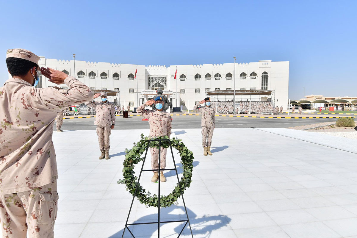 وأشار إلى أنه ومن على منبر الفخر والشموخ نقف بإجلال واحترام أمام نصب الشهيد التذكاري الذي يرمز إلى الشجاعة والقوة التي تحلى بها شهداؤنا الأبرار من قواتنا البرية ..نُقشت أسماؤهم بأحرف من نور على صفحات كتاب المجد والوفاء مثمنين تضحياتهم وعطاءهم ليضيئوا مشاعل من نور لحفظ كرامة هذا الوطن الغالي.