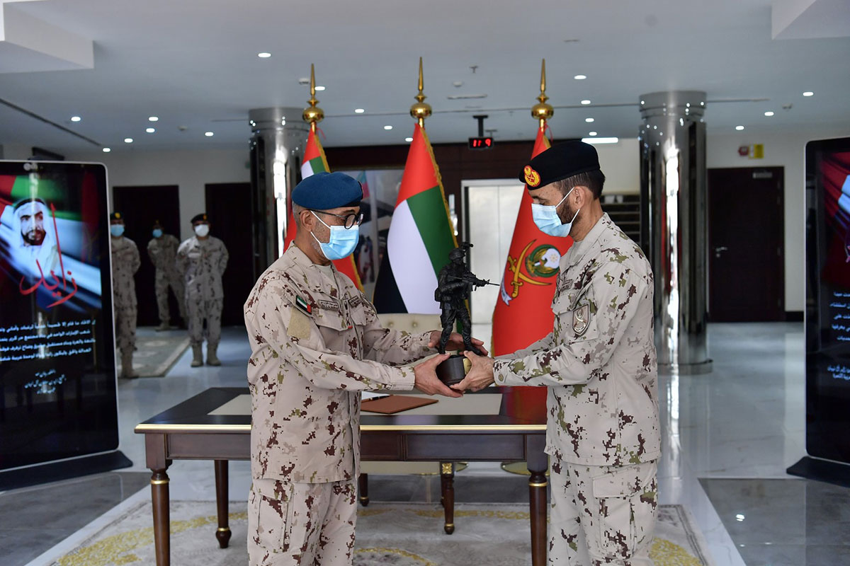 ثم أقيمت بعد ذلك مراسم تسليم واستلام علم القوات البرية، وتوجه سعادة اللواء الركن سعيد راشد الشحي قائد القوات البرية بالشكر والاعتزاز لقيادتنا الرشيدة على الثقة الغالية مستمداً العون من المولى عز وجل في مواصلة مسيرة العطاء والإنجاز في قيادة القوات البرية ومواجهة شتى التحديات في جميع المجالات.