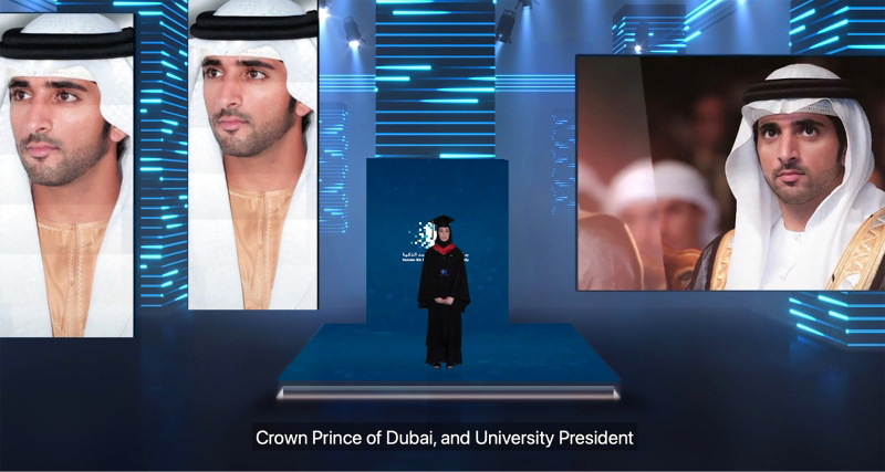 وتضمن الحفل الافتراضي الاحتفاء بتخريج الدفعة الأولى من طلبة الدكتوراه في «جامعة حمدان بن محمد الذكية»، والتي ضمت 8 خريجين، 3 منهم من «كلية إدارة الأعمال والجودة» و3 من «كلية الدراسات الصحية والبيئية» و2 من «كلية التعليم الإلكتروني»، كما تم الاحتفاء بتخريج 360 دارساً في برامج الماجستير و146 دارساً في برامج البكالوريوس ودارسَيْن من برامج الدبلوم، والذين تسلّموا جميعاً شهاداتهم باستخدام تقنية «بلوك تشين» استكمالاً لنجاح «جامعة حمدان بن محمد الذكية» باعتبارها الأولى عربياً في تبنّي هذه التقنية المتطورة، والتي تتيح للخريجين مشاركة الشهادات الأكاديمية والدرجات العلمية عبر منصات التواصل الاجتماعي ومع المعاهد التعليمية وجامعات التعليم العالي في أي زمان ومكان.