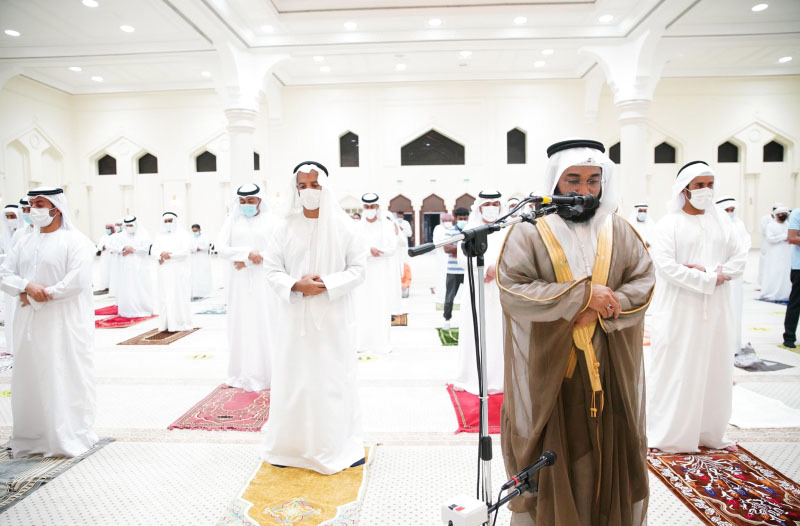 وأدى الصلاة بجانب سموه في مسجد الشيخ زايد بمدينة رأس الخيمة، الشيخ سلطان بن جمال بن صقر القاسمي مدير إدارة شؤون المواطنين في الديوان الأميري برأس الخيمة، والشيخ أرحمة بن سعود بن خالد القاسمي، مدير القسم الإعلامي لمكتب سمو ولي عهد رأس الخيمة، والشيخ محمد بن سعود بن خالد القاسمي، إلى جانب عدد من أعيان البلاد، وكبار الشخصيات والمسؤولين والمواطنين، وأبناء الجاليات العربية والإسلامية المقيمة، كما أدى جموع المصلين في مساجد الإمارة ومناطقها، صلاة الغائب على الشيخ حمدان بن راشد آل مكتوم، ودعا سمو ولي عهد رأس الخيمة والشيوخ، والمصلون الله العلي القدير أن يتغمد الفقيد بواسع رحمته، وأن يسكنه فسيح جناته.