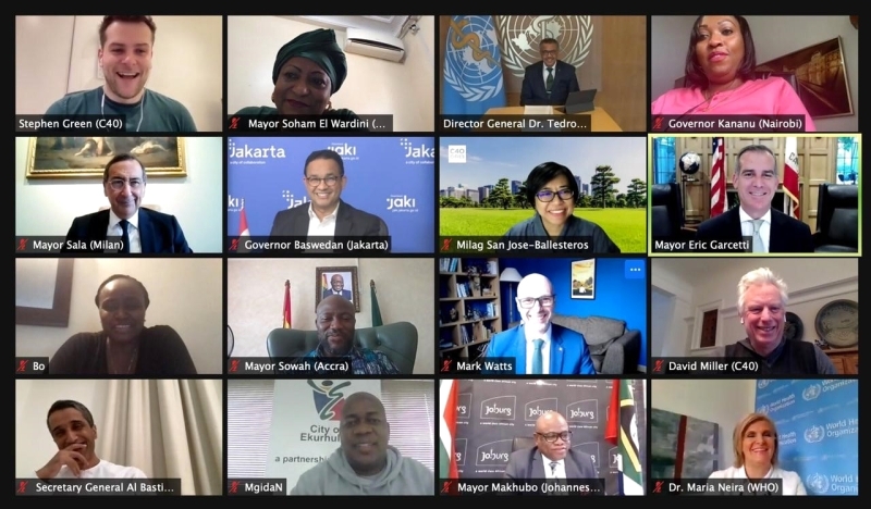 جاء ذلك خلال مشاركة معاليه في لقاء ضم عُمَد شبكة المدن القيادية C40، لتبادل المعارف والخبرات بشأن الجهود العالمية لتوفير اللقاحات للحد من الإصابة بـ«كوفيد 19»، بحضور الدكتور تيدروس أدهانوم، المدير العام لمنظمة الصحة العالمية إلى جانب عمداء مدن لوس أنجليس، وجاكرتا، وأكرا، وميلانو وفينيكس وديربان، ودكار، ولشبونة، وسياتل وجوهانسبرج، بالإضافة إلى ممثلي 16 مدينة أخرى حول العالم.