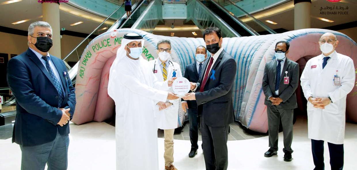 شاركت إدارة الخدمات الطبية بقطاع المالية والخدمات بشرطة أبوظبي في حملة للتوعية بمخاطر مرض سرطان القولون، بالتعاون مع مجموعة مستشفيات برجيل، وذلك تزامناً مع الشهر العالمي للتوعية بالمرض الذي يصادف شهر مارس من كل عام من خلال عرض «مجسم القولون» في بهو فرع المستشفى بجزيرة الريم أبوظبي.