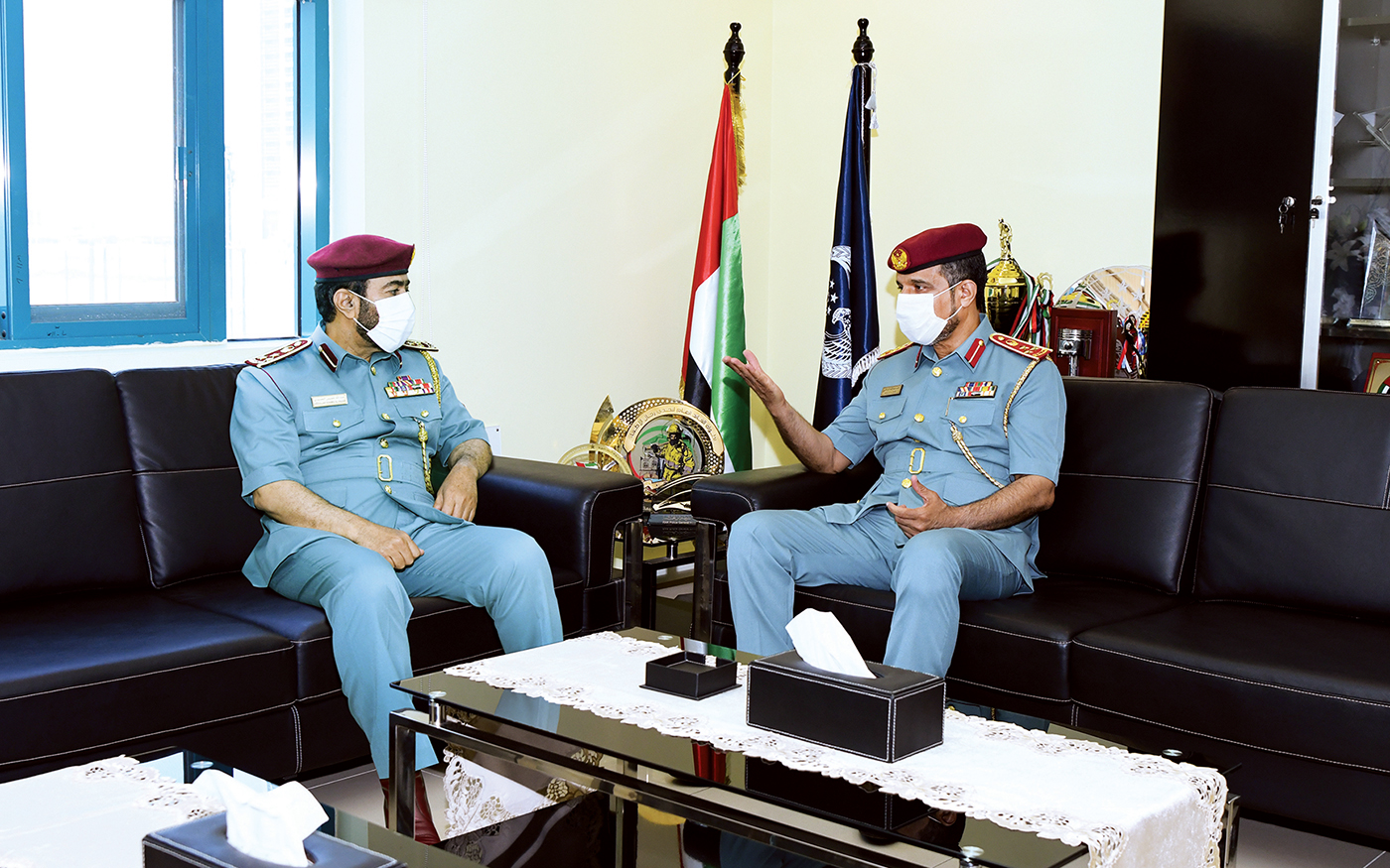 عقد العميد عبد الله خميس الحديدي القائد العام لشرطة رأس الخيمة بالإنابة اجتماعاً تنسيقياً مع العميد محمد عبد الله الزعابي مدير إدارة الدفاع المدني بالإمارة، بحضور العميد الدكتور محمد سعيد الحميدي مدير عام العمليات المركزية بشرطة رأس الخيمة، للتباحث حول آلية تنظيم العمل في ما يتعلق بحوادث المفقودين والمصابين من مرتادي المناطق الجبلية.