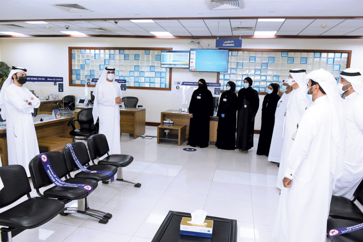 وفور الإعلان عن المؤشرات الفرعية لنتائج دراسات سعادة المتعاملين، للمجلس التنفيذي لإمارة دبي، والتي أظهرت حصول مركز جمارك الميناء الجاف والأقمشة على أعلى نتيجة على مستوى مراكز خدمات حكومة دبي وهي (98.4%)، توجه أحمد محبوب مصبح والوفد المرافق والذي ضم عبدالله محمد الخاجة المدير التنفيذي لقطاع إدارة المتعاملين، الدكتور عبدالله بوسناد المدير التنفيذي لقطاع التفتيش الجمركي، محمد المعيني مستشار الشؤون الجمركية، وعدد من مديري الإدارات والمراكز الجمركية، في زيارة إلى المركز لتهنئة المسؤولين والموظفين وتكريمهم، تقديراً لجهودهم التي أسهمت في تميز جمارك دبي على صعيد سعادة المتعاملين، حيث أشاد سعادته بما حققوه من أداء إيجابي خلال العام الماضي، بالرغم من التحديات التي فرضتها جائحة كورونا «كوفيد 19»، ودعاهم إلى مواصلة التميز والعطاء وبذل المزيد من الجهد لتنفيذ مستهدفات الخطة الخمسية للدائرة 2021 ـ 2026، ومن أهدافها العمل على بناء تجربة وظيفية استثنائية، وتعزيز ثقافة الأداء الاحترافي والسمعة، والحفاظ على المكانة الريادية التي وصلت لها جمارك دبي اليوم،، معرباً عن فخره بالإنجاز الذي تحقق والذي يؤكد أننا نسير على الطريق الصحيح لتنفيذ رؤية القيادة في جعل حكومة دبي مرجعاً عالمياً لأفضل الممارسات في مجال إسعاد المتعاملين والتميز في الخدمات المقدمة التي تحقق سعادة المواطن والمقيم والزائر.
