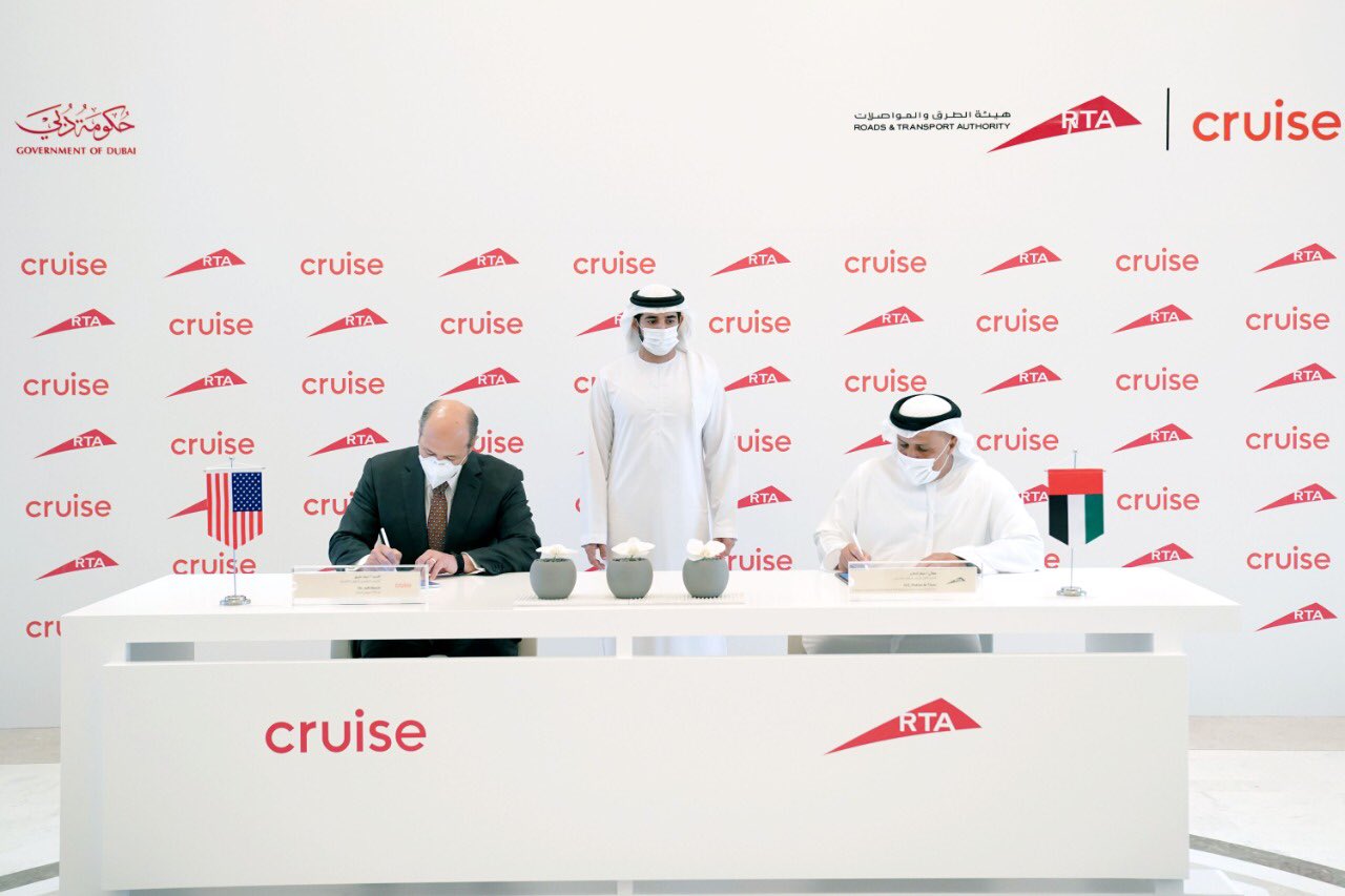 وحضر سموه توقيع شراكة استراتيجية بين الشركة العالمية وهيئة الطرق والمواصلات لتشغيل مركبات الشركة ذاتية القيادة في دبي اعتباراً من 2023 ليصل عددها إلى 4000 مركبة في 2030.