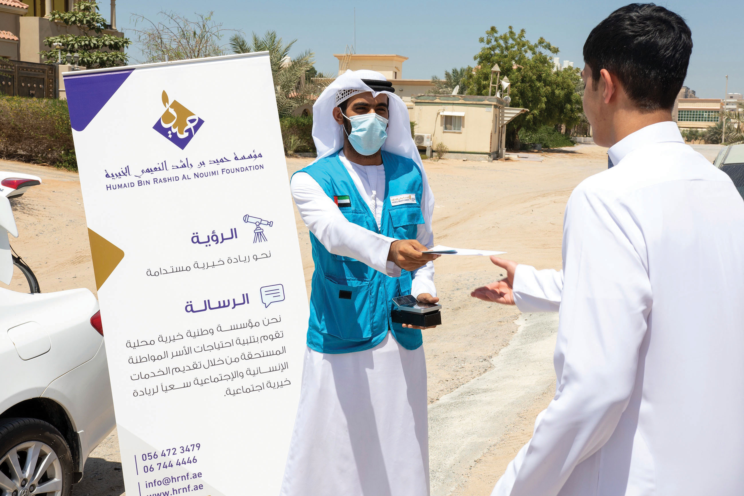 ومن جانبه أكد ضرار بالهول الفلاسي، عضو المجلس الوطني الاتحادي والمدير التنفيذي لمؤسسة وطني الإمارات، استعداد المؤسسة لدعم جهود الدولة عبر دوائرها المختلفة ومؤسساتها، والتي برزت خلال مشروع المير الرمضاني، والذي قدم فيه 15 متطوعاً ساهموا بالتواصل الهاتفي مع المستفيدين للتنسيق معهم والوصول إلى موقع المستفيد وتسليمه بطاقة المير الرمضاني.