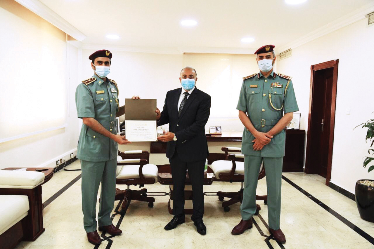كما تسلم المقدم محمد خلفان الغفلي من مركز التدريب بشرطة عجمان شهادة التكريم من الدكتور تقديراً لمشاركته في المعرض الدولي الأول هذا العام افتراضياً تحت عنوان «استشراف مستقبل الموارد البشرية ما بعد جائحة كورونا: التحديات والفرص»، تحت رعاية الشيخ راشد بن حميد النعيمي، رئيس مجلس الكلية.