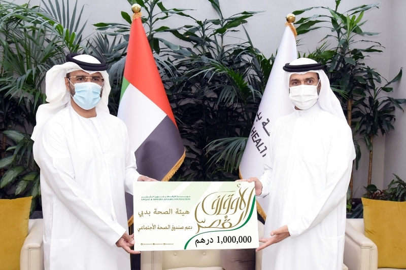 وسلّم علي المطوع الأمين العام لمؤسسة الأوقاف وشؤون القصر شيك الدعم إلى عوض صغير الكتبي مدير عام هيئة الصحة في دبي بمقر الهيئة، بحضور خالد آل ثاني نائب الأمين العام لمؤسسة الأوقاف، بحضور عدد من المسؤولين من كلا الطرفين.