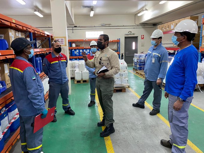 وقال العفريت إن الفريق اتخذ إجراءات عملية ميدانية استمرت لمدة 3 أشهر في ظل ظروف جائحة كورونا وتم التأكد من سلامة إجراءات تخزين المواد الخطرة في المخازن والتركيز على تخزينها فقط في الأماكن المرخصة من قبل الجهات المعنية والاطمئنان على مدى التزام المنشآت بالاشتراطات المطلوبة وكفاءة العاملين في هذا القطاع وتم رصد بعض التجاوزات والتعامل معها ومعالجتها واتخاذ الإجراءات التصحيحية اللازمة من قبل المنشآت بشكل مباشر.