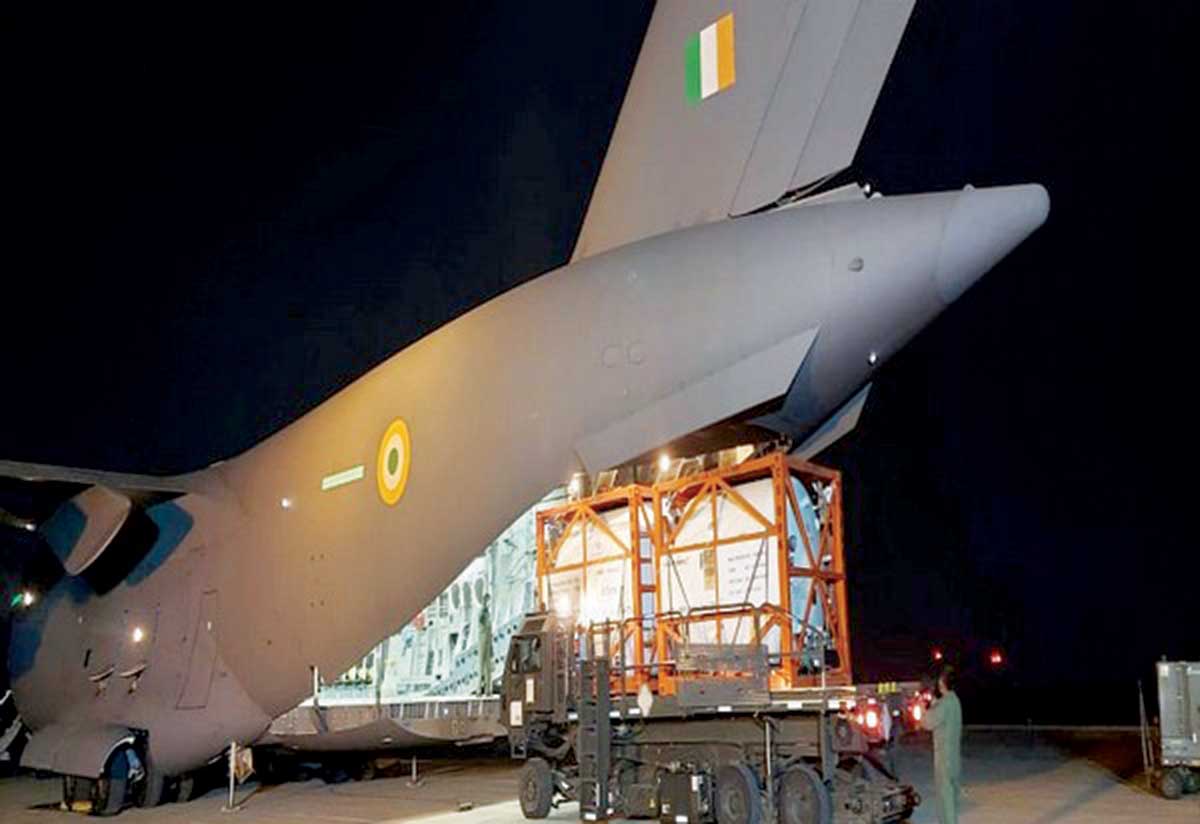وبحسب ما نقله موقع "إن دي تي في" الهندي، فقد نقلت طائرة من طراز C-17 تابعة لسلاح الجو الهندي يوم الاثنين جواً 6 حاويات فارغة من الأكسجين المبرد من دبي لعمليات الإغاثة من جائحة "كوفيد-19" بالبلاد.