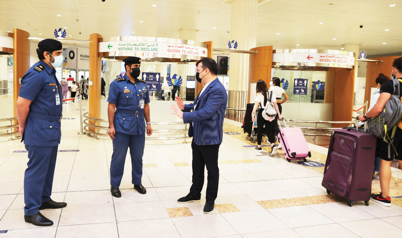 بالابتسامة، يستقبل موظفو إدارة عمليات المسافرين بجمارك دبي، في مطار دبي الدولي، زوار الدولة ليلة عيد الفطر السعيد، إذ يعتبر المطار بوابة العبور إلى عالم المرح والبهجة والفعاليات الممتعة بدبي.