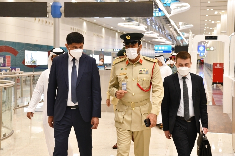 وكان في استقباله العميد علي عتيق بن لاحج مدير الإدارة العامة لأمن المطارات، والعقيد تركي بن فارس، مدير إدارة مركز القيادة والسيطرة في الإدارة العامة للعمليات، وعدد من الضباط من شرطة دبي ووزارة الداخلية، والمسؤولين من وزارة داخلية أوزبكستان.