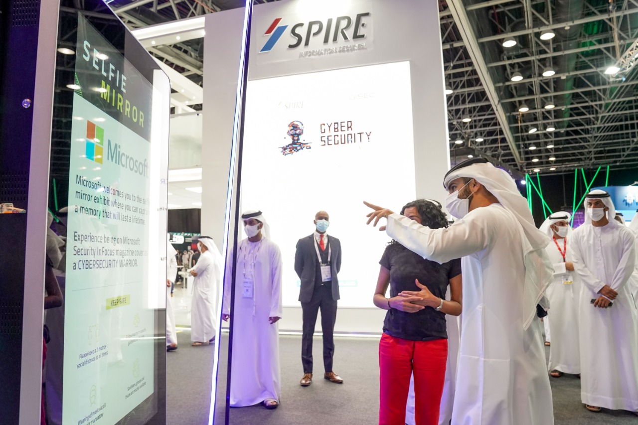 وحرص سموه خلال الجولة التي شملت عدداً من الأجنحة المحلية والعالمية المشاركة في المعرض الذي يستضيف مشاركات من أكثر من 30 دولة حول العالم، على التعرف على أحدث الحلول والتقنيات التي تطرحها جملة من أكبر الشركات العالمية المتخصصة في هذا المجال الحيوي والذي تتزايد أهميته في عصر الثورة الصناعية الرابعة وتزايد الاعتماد على التقنيات والشبكات الرقمية التي أصبحت تشكل الركيزة الأساسية للحياة العصرية، وتمثل عصب الاقتصاد الحديث.
