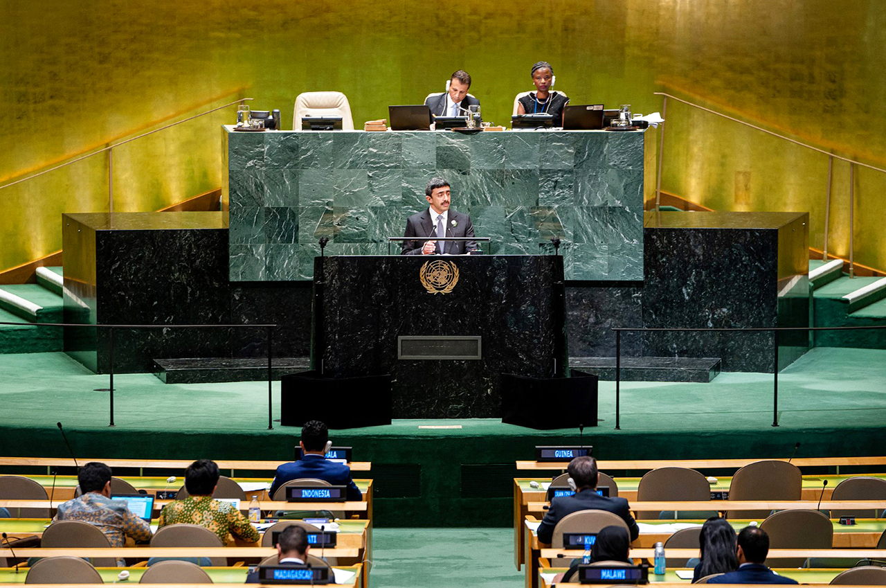 وأضاف سموّه: «التزمت دولة الإمارات بالعمل المتعدد الأطراف، والقانون الدولي وميثاق الأمم المتحدة منذ تأسيسها وستستمر الدولة في التمسك بهذه المبادئ خلال عضويتها في مجلس الأمن. وإنني على ثقة من أن تاريخنا ودورنا كشريك ووسيط موثوق به، سيمكننا من تقديم مساهمة فاعلة خلال السنتين اللتين سنعمل فيهما في مجلس الأمن. وإننا ندرك المسؤولية الكبيرة المرتبطة بالعضوية وأهمية التحديات التي يواجهها المجلس، وبكل عزم ومثابرة، ستحرص دولة الإمارات على الحفاظ على السلم والأمن الدوليين».
