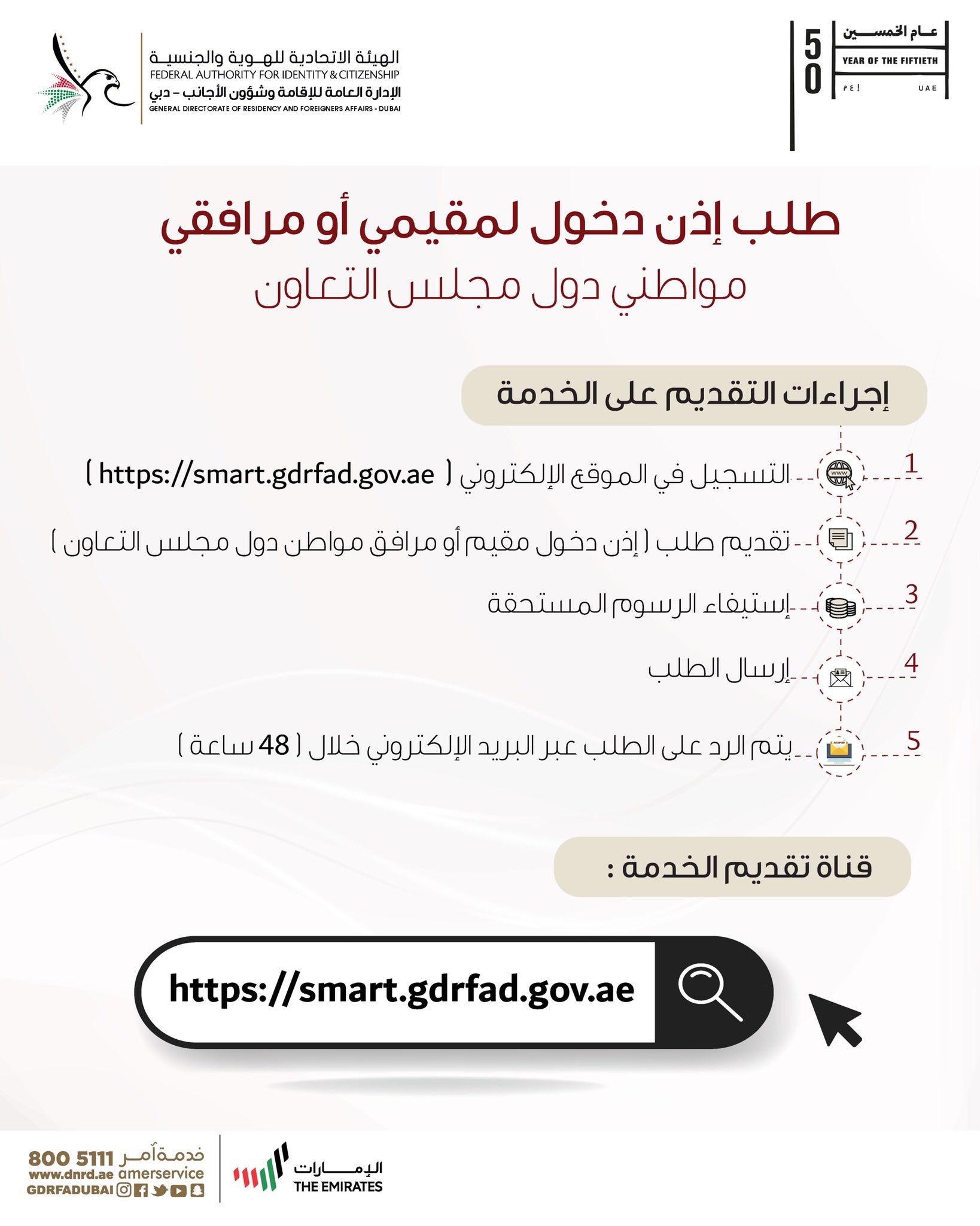 أعلنت الهيئة الاتحادية للهوية والجنسية عن خطوات تقديم طلب إذن دخول لمقيمي أو مرافقي مواطني دول مجلس التعاون.