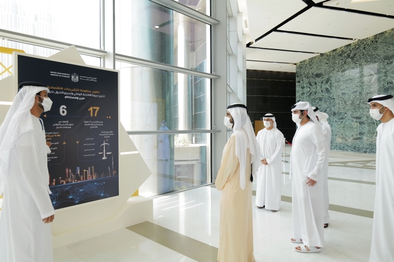 جاء ذلك خلال اطلاع سموه بحضور سمو الشيخ مكتوم بن محمد بن راشد آل مكتوم، نائب حاكم دبي، وسمو الشيخ أحمد بن محمد بن راشد آل مكتوم، رئيس مجلس دبي للإعلام، ومعالي محمد بن عبدالله القرقاوي وزير شؤون مجلس الوزراء، من معالي عبدالله بن طوق المري وزير الاقتصاد ومعالي الدكتور أحمد بن عبدالله حميد بالهول الفلاسي وزير دولة لريادة الأعمال والمشاريع الصغيرة والمتوسطة ومعالي الدكتور ثاني بن أحمد الزيودي وزير دولة للتجارة الخارجية، على خطط وبرامج ومشاريع وزارة الاقتصاد، إذ أطلق سموه عدداً من المبادرات والمشاريع الاقتصادية الجديدة.