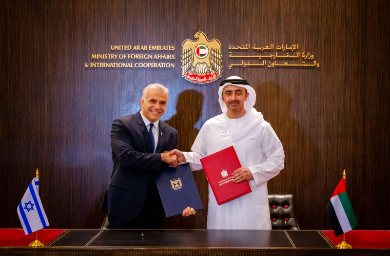 ووقع سمو الشيخ عبدالله بن زايد آل نهيان وزير الخارجية والتعاون الدولي ويائير لابيد وزير خارجية دولة إسرائيل على اتفاقية التعاون الاقتصادي والتجاري بين البلدين.