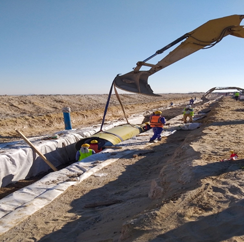 ويشار إلى أن المشروع يتضمن قسمين: الأول بأطوال إجمالية تبلغ 12.52 كيلومتراً من أنابيب نقل المياه بقطر 1200 مم، والثاني بأطوال إجمالية تبلغ 24.12 كيلومتراً تتكون من 13.97 كيلومتراً من أنابيب نقل المياه بقطر 1200 مم و10.15 كيلومترات من أنابيب نقل المياه بقطر 600 مم، ويشمل المشروع توريد وتركيب وفحص وتشغيل أنابيب نقل المياه من الزجاج المقوى (GRE) بأقطار مختلفة، إضافة إلى غرف الصمام مسبقة التجهيز من الزجاج المقوى (GRE).