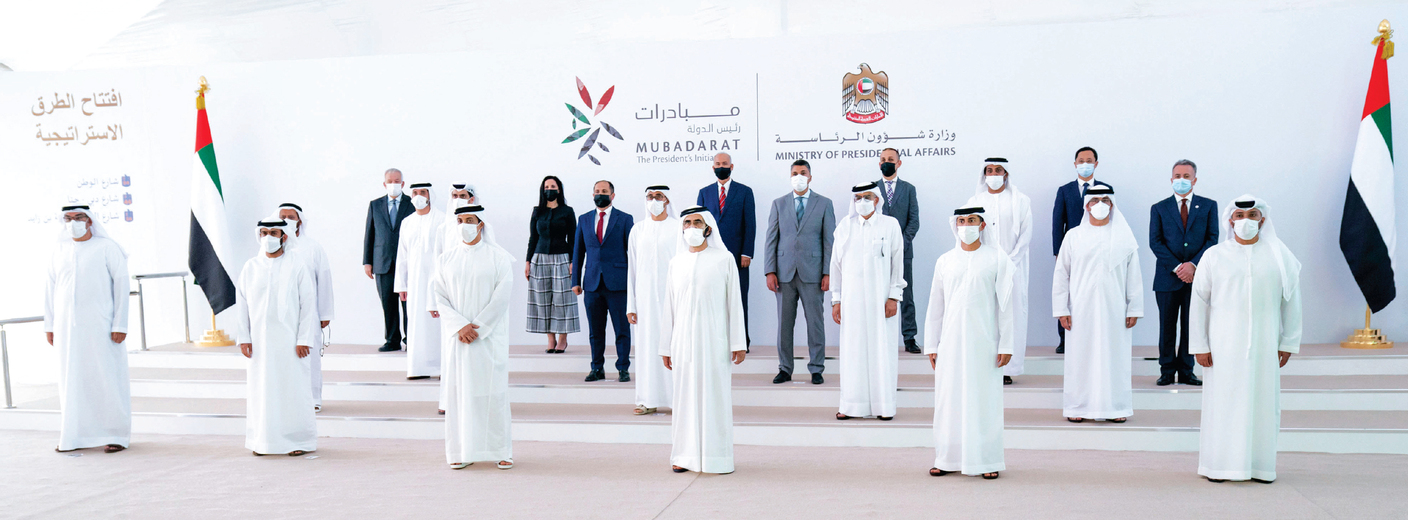 واستمع صاحب السمو الشيخ محمد بن راشد آل مكتوم، وإلى جانبه سمو الشيخ منصور بن زايد آل نهيان، إلى شرح من المهندس علي المزروعي، مدير إدارة المشاريع الهندسية في وزارة شؤون الرئاسة، حول مشاريع الطرق الحيوية التي جرى تنفيذها بمتابعة سمو الشيخ منصور بن زايد آل نهيان، وأشرفت وزارة شؤون الرئاسة على تنفيذها بالتعاون والتنسيق مع وزارة الطاقة والبنية التحتية وشركة الاتحاد للماء والكهرباء، وتضم شبكة مسارات وطرق وتقاطعات وجسور في ثلاثة محاور رئيسية تشمل: طريق الشيخ خليفة بن زايد وطريق الوطن وطريق حتا دبي، وبأطوال إجمالية تصل إلى 112 كيلومتراً.