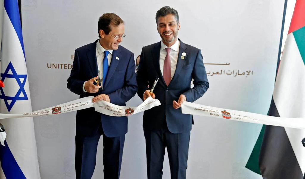 افتتح سعادة محمد محمود آل خاجة سفير الإمارات لدى دولة إسرائيل اليوم سفارة الدولة في تل أبيب رسميا بحضور فخامة إسحاق هرتسوغ رئيس دولة إسرائيل و معالي مريم بنت محمد سعيد حارب المهيري وزيرة دولة للأمن الغذائي والمائي في إطار تعزيز العلاقات الثنائية على ضوء الاتفاق الإبراهيمي للسلام التاريخي الذي تم توقيعه بين دولة الإمارات ودولة إسرائيل في سبتمبر 2020.
