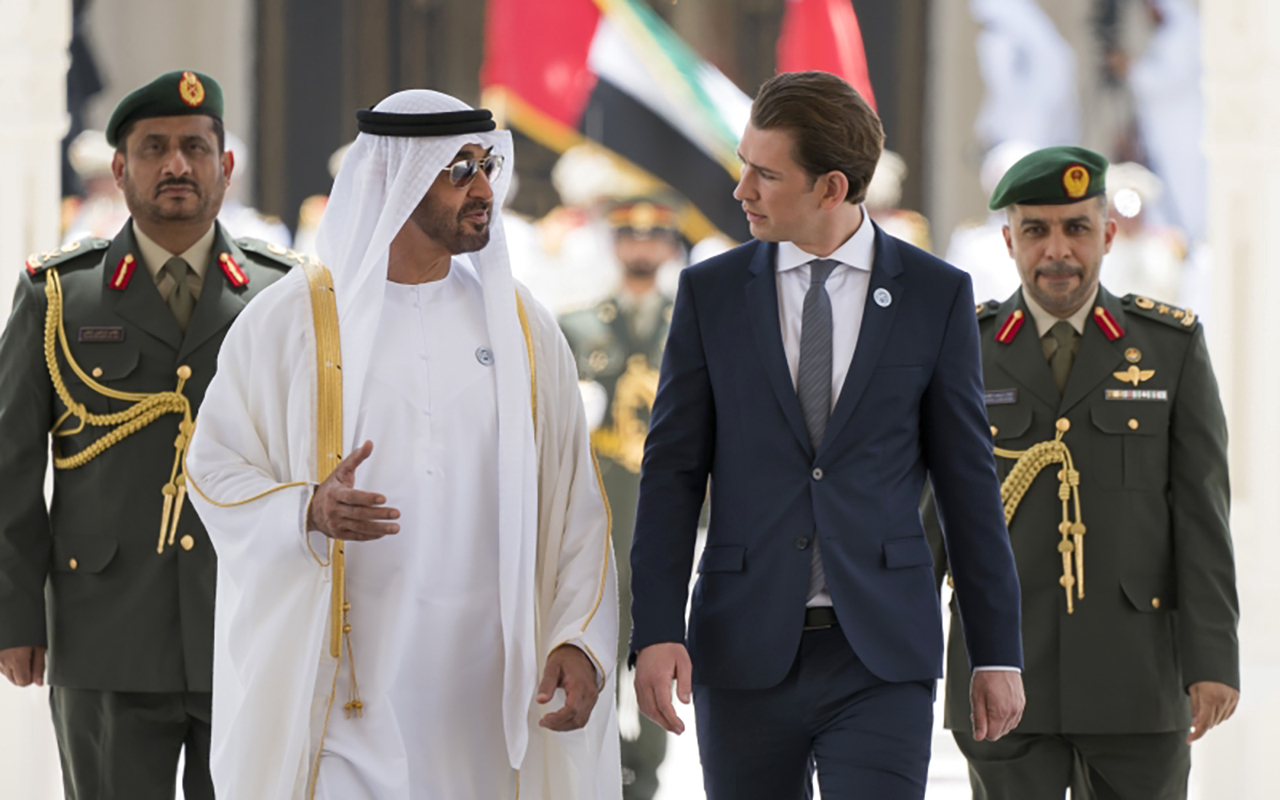 رحّب معالي سيباستيان كورتس مستشار جمهورية النمسا بزيارة صاحب السمو الشيخ محمد بن زايد آل نهيان ولي عهد أبوظبي نائب القائد الأعلى للقوات المسلحة إلى النمسا المقررة اليوم ، مؤكدا انها تعتبر محطة مهمة في إطار تعزيز وتوطيد علاقات التعاون بين البلدين الصديقين و التي شهدت تطورات كبيرة في السنوات الأخيرة ، وقال "زيارة ولي عهد أبوظبي مصدر سرور وشرف عظيم لنا".