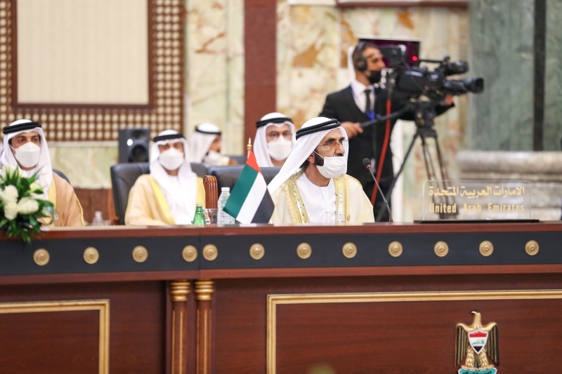 كما وصف سموه بغداد بـ«عاصمة الرشيد والمأمون وعاصمة العالم.. دار السلام.. بيت حكمة البشر.. بغداد الشعراء والأدباء والعلماء.. بغداد دجلة والفرات»، وقال سموه: «رغم جراحها متفائلين بعودتها ونهضتها ومجدها بإذن الله.. حفظ الله بغداد.. حفظ الله شعب العراق العظيم». وأكدت الإمارات أمام القمة موقفها الثابت في دعم العراق والوقوف إلى جانبه في كل الخطوات لما فيه مصلحة شعبه.