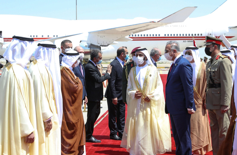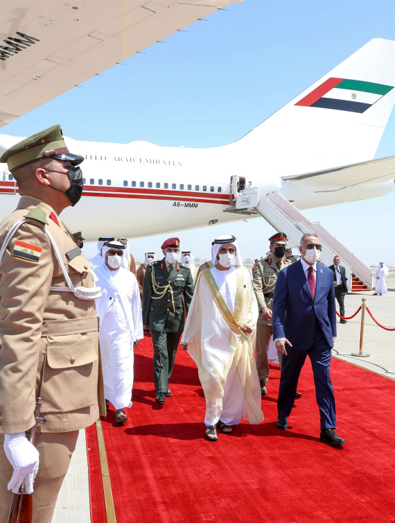 وكان صاحب السمو الشيخ محمد بن راشد آل مكتوم، قد وصل بحفظ الله ورعايته إلى مطار بغداد الدولي بعد ظهر أمس، على رأس وفد الدولة للمشاركة في «مؤتمر بغداد للتعاون والشراكة» الذي انطلق أمس في العاصمة بغداد بمشاركة دول إقليمية ودولية.
