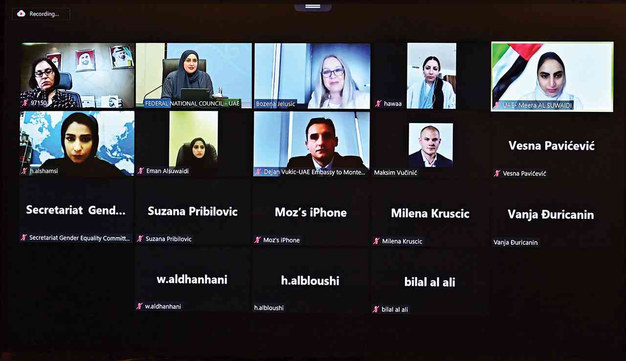 شارك عدد من عضوات المجلس الوطني الاتحادي في الورشة الافتراضية التي عقدت أمس حول موضوع «تمكين المرأة الإماراتية وتعزيز المساواة بين الجنسين»، التي نظمتها سفارة مونتينيغرو في الدولة بالتعاون مع المجلس الوطني الاتحادي وبرلمان جمهورية مونتينيغرو، بهدف تبادل الخبرات والمعارف وأفضل الممارسات والأدوار المنوطة بالبرلمانات في هذا المجال.
