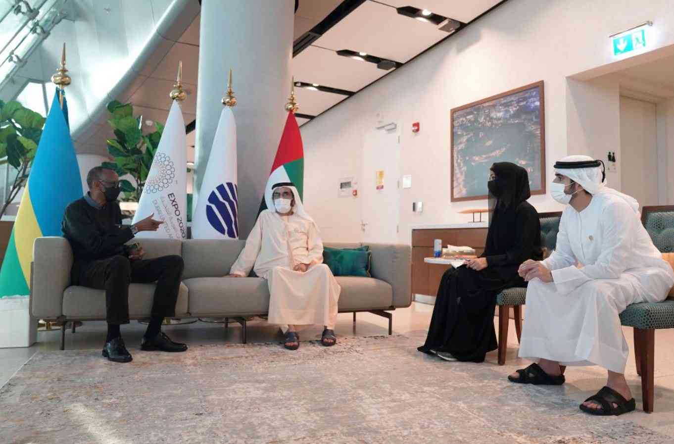 ورحّب صاحب السمو الشيخ محمد بن راشد آل مكتوم بالرئيس الرواندي والوفد المرافق، خلال اللقاء الذي عقد في مقر معرض "إكسبو 2020 دبي" وحضره سمو الشيخ أحمد بن محمد بن راشد آل مكتوم، رئيس مجلس دبي للإعلام، ومعالي ريم بنت إبراهيم الهاشمي، وزيرة دولة لشؤون التعاون الدولي المدير العام لإكسبو 2020 دبي، حيث تناول اللقاء مستقبل العلاقات الثنائية في ضوء الروابط التاريخية القوية التي تجمع البلدين والشعبين الصديقين في إطار توافق وجهات النظر حول القضايا الأساسية التي تخص