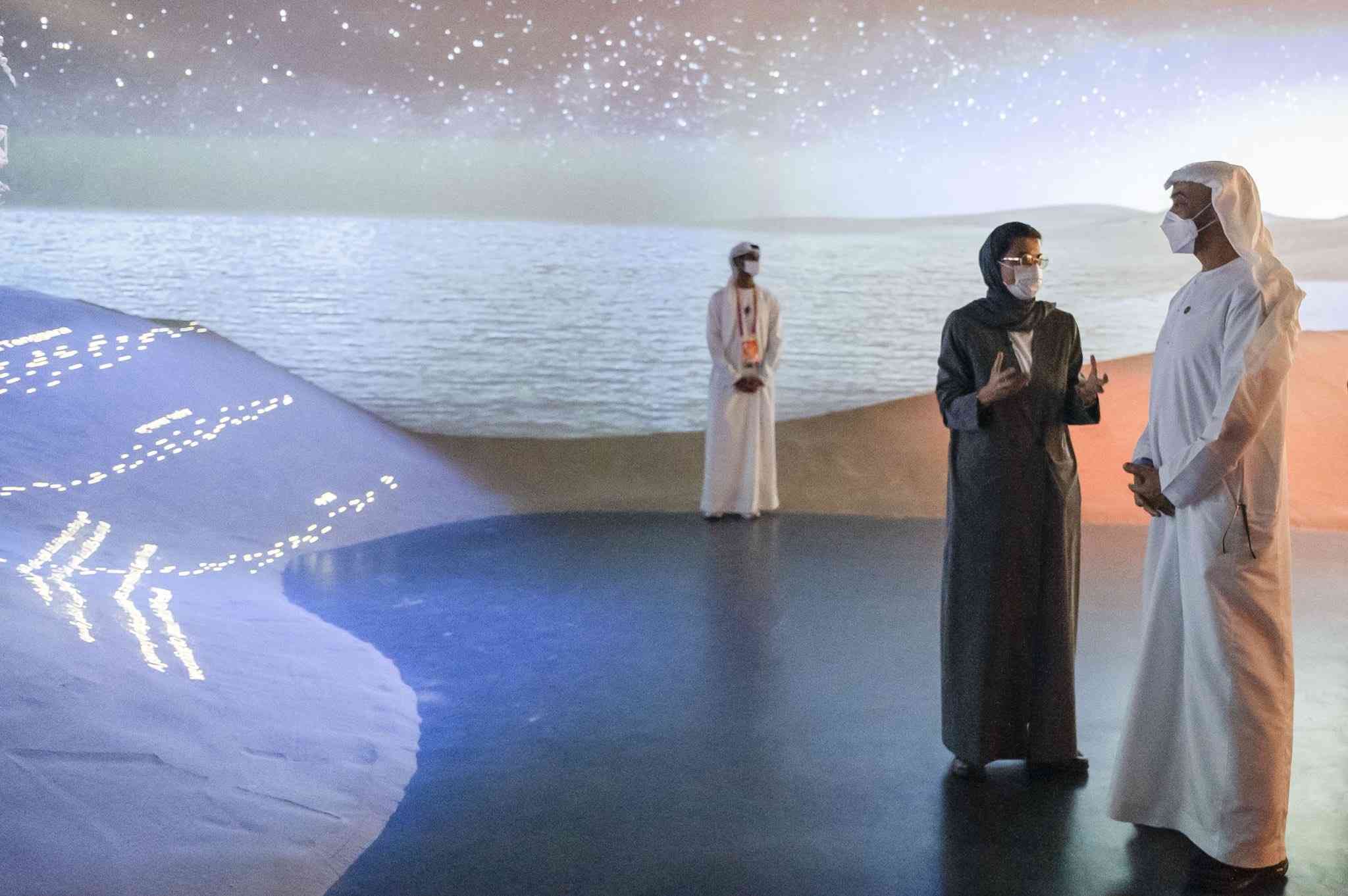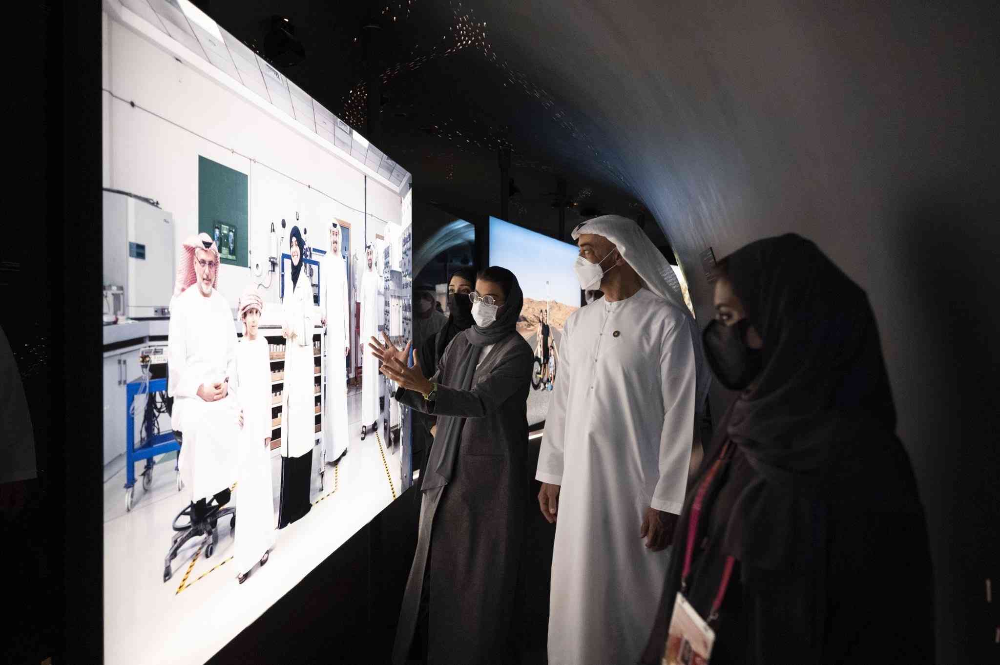 وأشار صاحب السمو الشيخ محمد بن زايد آل نهيان.. إلى أن جناح دولة الإمارات يعد منصة نوعية متميزة لتعريف العالم بما حققته الدولة ونهضتها خلال العقود الماضية وما تطمح إلى تحقيقه خلال الخمسين عاماً المقبلة.. بجانب إبراز صورة الإنسان الإماراتي المتسلح بالعلم والوعي وحب الوطن وإرادة التفوق والريادة.