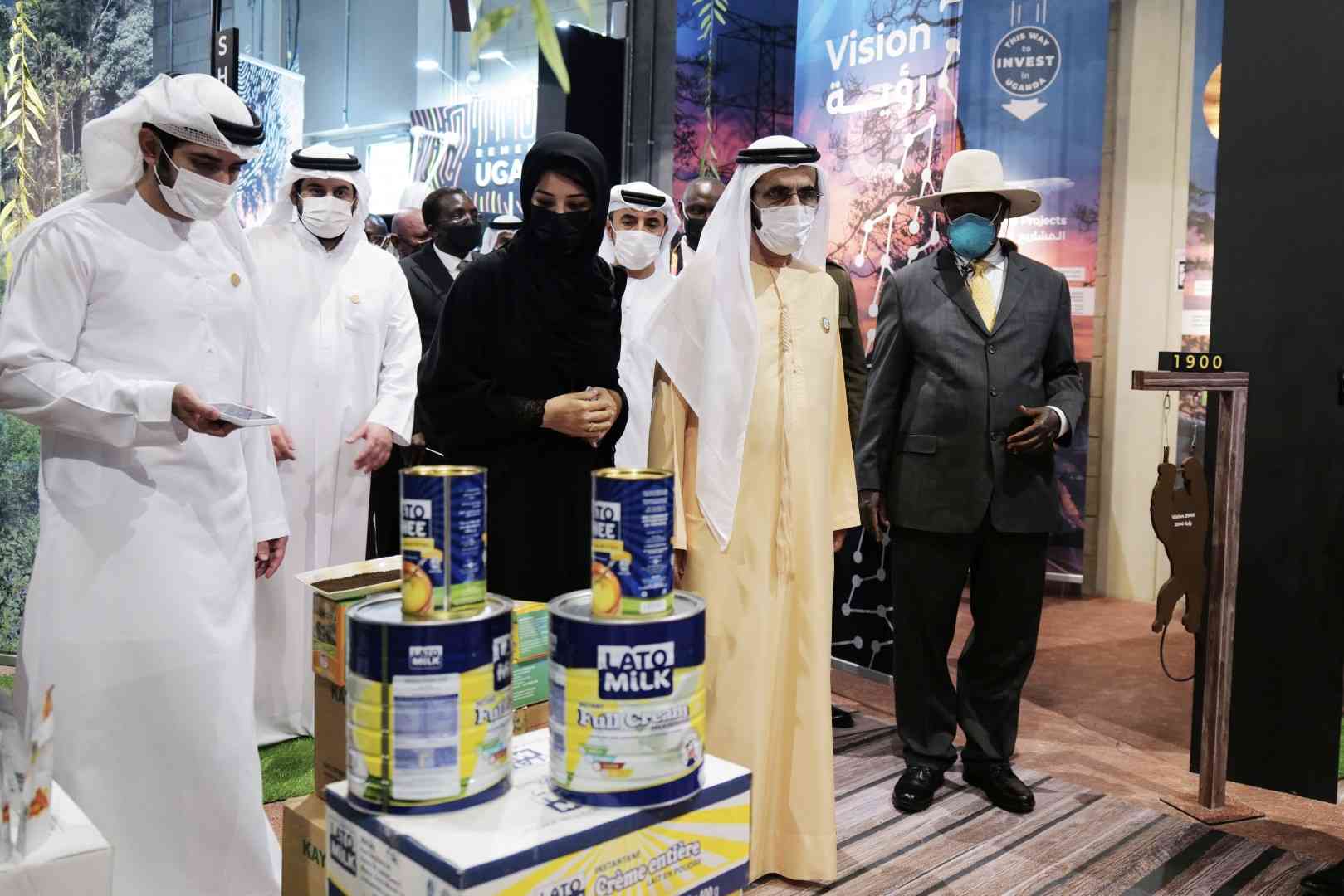 واطلع صاحب السمو الشيخ محمد بن راشد آل مكتوم، بصحبة الرئيس يوري كاغوتا موسيفيني، على محتوى جناح دولة أوغندا المُقام في منطقة "الفرص" في إكسبو 2020 دبي، وسط مشاركة عالمية ضخمة تضم 192 دولة من مختلف أنحاء العالم، حيث تعرف سموه على ما يقدمه الجناح من محتوى يبرز ملامح رئيسية من ثقافة أوغندا وطبيعتها وقطاع الزراعة المزدهر فيها.