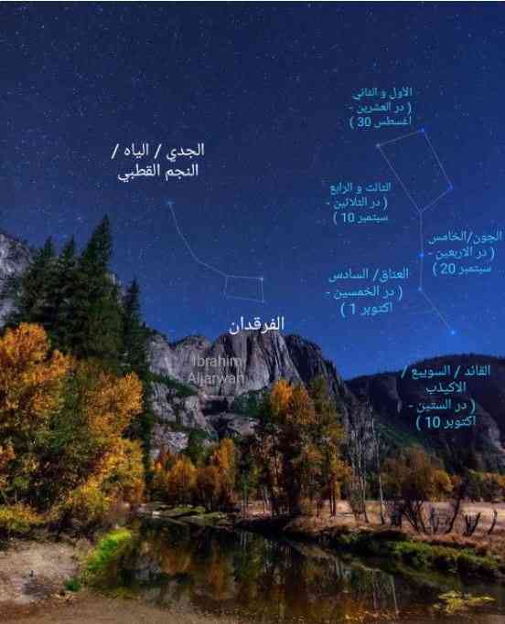 كما أشار إلى أن الوسم عند أهل الأنواء هو مصطلح لفترة زمنية تضم أربعة طوالع من المنازل القمرية، كل منزلة 13 يوماً، وهي «العواء» أول نجوم الوسم، ودخوله يوم 16 أكتوبر، ويليه «السماك»، ودخوله 29 أكتوبر، ثم «الغفر» 11 نوفمبر، وأخيراً «الزبانا»، وهو آخر نجوم الوسم، ودخوله يوم 24 نوفمبر، وينتهي الوسم 6 ديسمبر، ليبدأ الشتاء و دخول البرد واول مربعانية الشتاءوتبلغ عدد أيام الوسم 52 يوماً، فيما يعده البعض 60 يوماً، تبدأ من منتصف أكتوبر، وتنتهي مع منتصف ديسمبر.