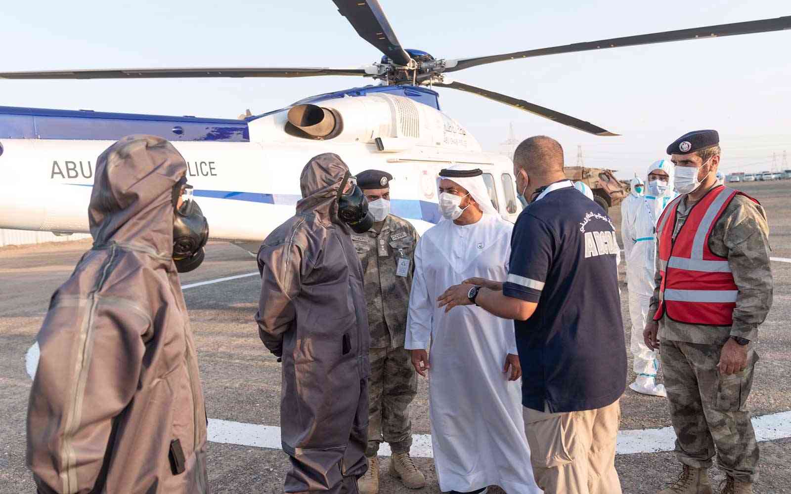 وكان سمو الشيخ حمدان بن زايد آل نهيان قد وصل إلى موقع التمرين حيث كان في استقباله معالي اللواء ركن طيار فارس خلف المزروعي قائد عام شرطة أبوظبي مدير التمرين حيث استمع سموه إلى شرح حول منظومة التطهير وأهداف ومراحل التمرين والخطط الموضوعة التي تم تنفيذها.