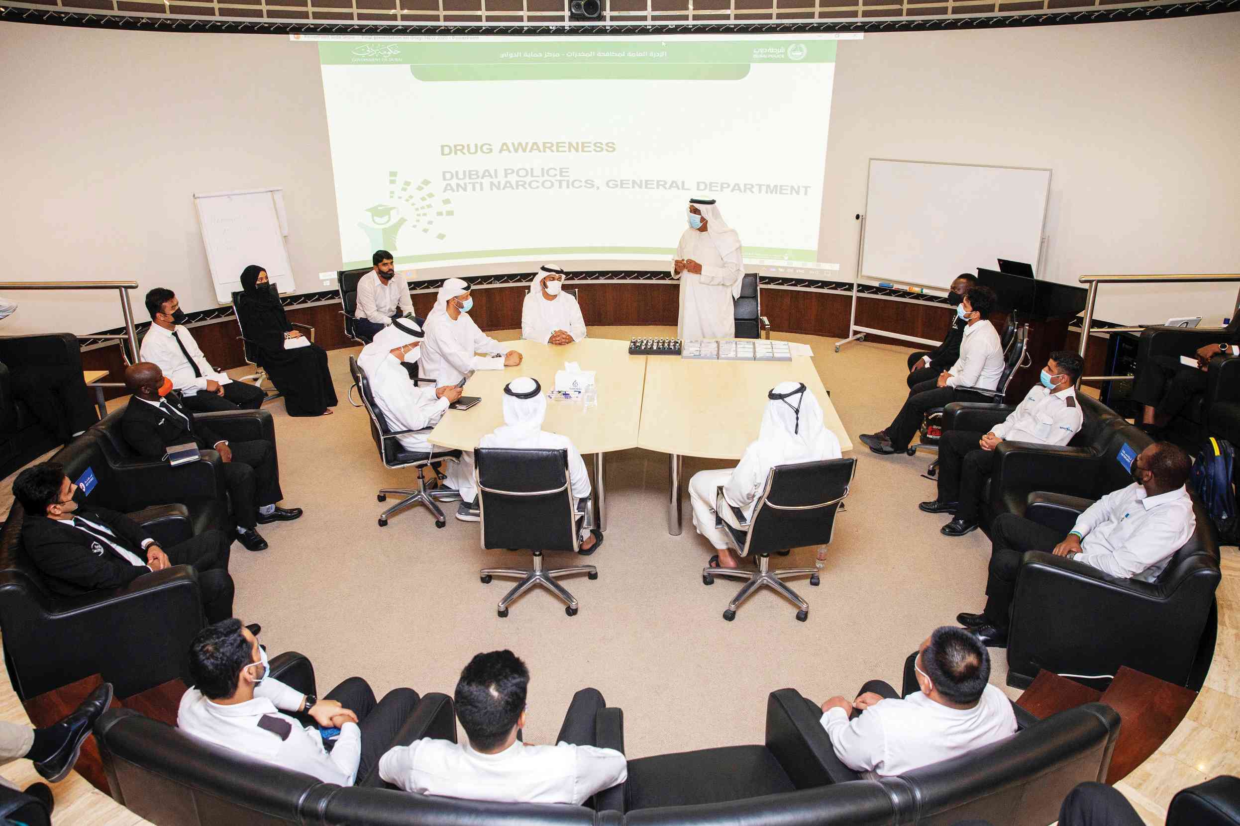 بدوره، قام الرقيب أول موسى جوليد من مركز حماية الدولي بتعريف موظفي الأمن بأنواع المخدرات وأشكالها وبعض طرق إخفائها والأضرار الاجتماعية والاقتصادية المترتبة عليها، وآلية التواصل مع الإدارة العامة لمكافحة المخدرات عبر الرقم المجاني لشرطة دبي (901)، وسيتم التعامل مع المُبلغ والمعلومة بسرية تامة، لافتاً إلى أن الإدارة العامة لمكافحة المخدرات تتعامل مع جميع البلاغات الواردة من قبل الأهالي بالسرية التامة وتراعي مصلحة المُبلغ عنه، وتقدم له جميع وسائل الدعم اللازمة ويتم تحويله للعلاج.