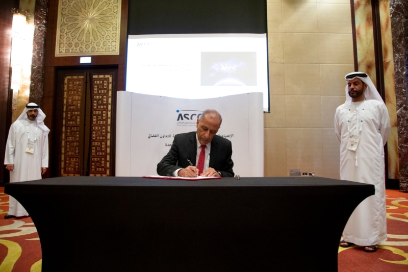 وقام بالتوقيع على الميثاق الأساسي للمجموعة العربية للتعاون الفضائي، ممثلاً لجمهورية مصر العربية، الدكتور محمد القوصي، الرئيس التنفيذي لوكالة الفضاء المصرية، وسالم القبيسي مدير عام وكالة الإمارات للفضاء، وعدد من كبار المسؤولين في الوكالة.