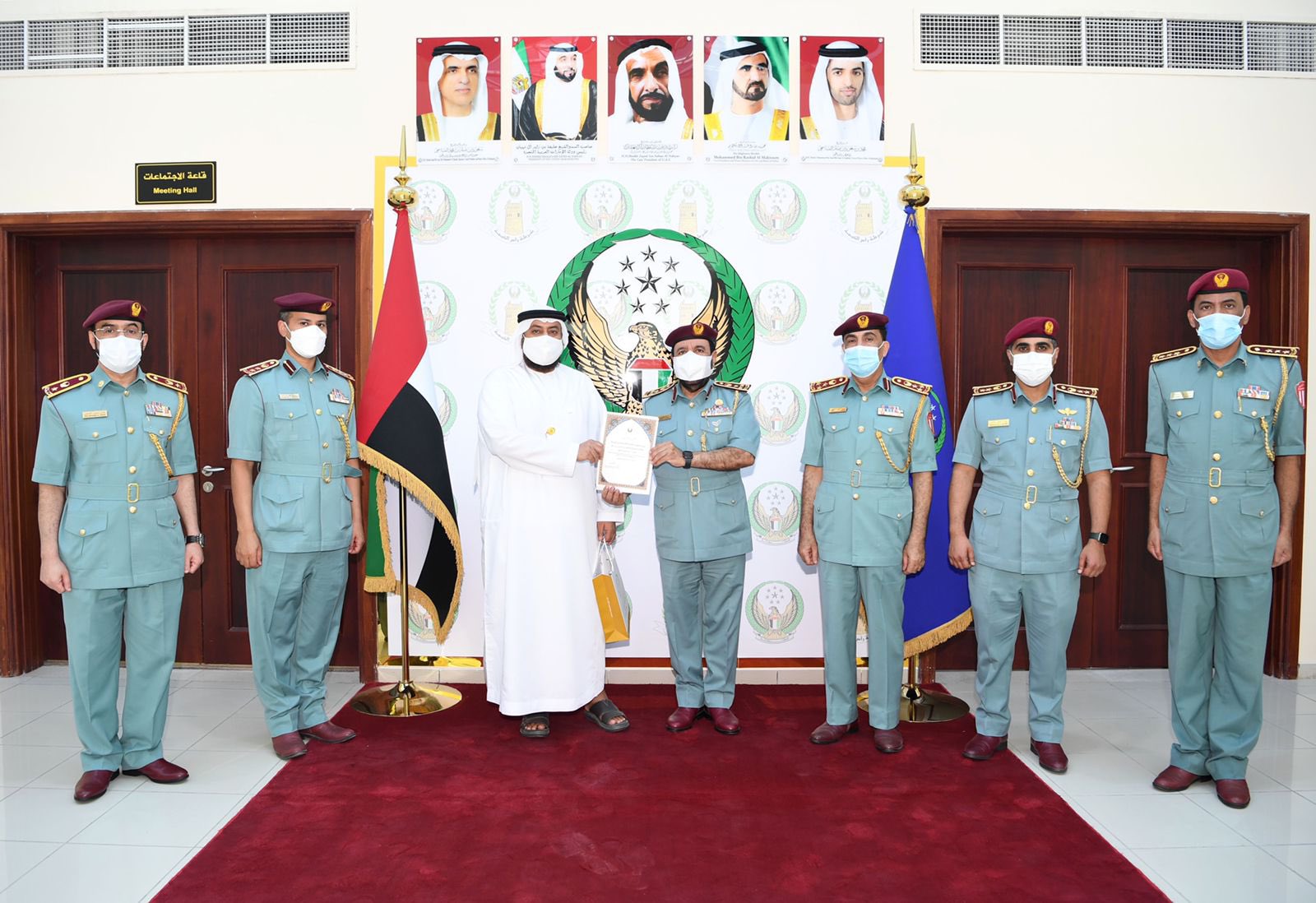كرم سعادة العميد الدكتور محمد سعيد الحميدي مدير عام العمليات المركزية بشرطة رأس الخيمة، الأستاذ عمر الشعر مدير مدرسة موسى بن نصير حلقة2 بنين، بمركز خدمات المرور والترخيص، بحضور العميد أحمد سعيد النقبي مدير إدارة المرور والدوريات بشرطة رأس الخيمة، والعقيد راشد الزعابي مدير إدارة ترخيص الآليات والسائقين، وعدد من ضباط مركز خدمات المرور والترخيص.