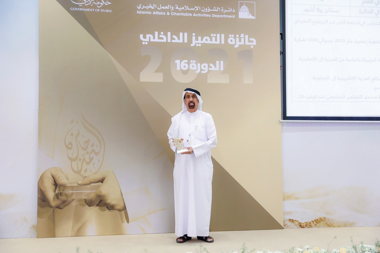استناداً إلى رؤية صاحب السمو الشيخ محمد بن راشد آل مكتوم، نائب رئيس الدولة، رئيس مجلس الوزراء، حاكم دبي، رعاه الله، في تهيئة وتطوير العمل الحكومي للمستقبل في مختلف المجالات، نظمت دائرة الشؤون الإسلامية والعمل الخيري بدبي، الدورة السادسة عشرة من جائزة «التميز الداخلي 2021»، برعاية وحضور حمد الشيخ أحمد الشيباني، مدير عام الدائرة، وذلك استلهاماً من مفهوم التميز الحكومي الذي تنشده دولة الإمارات العربية المتحدة.