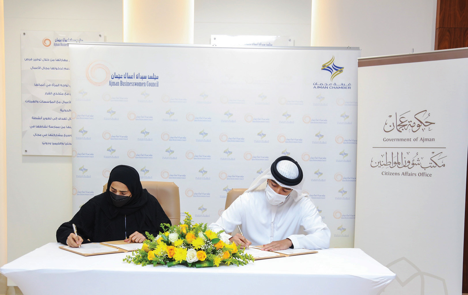 وقع الاتفاقية في مركز عجمان لريادة الأعمال، الشيخ عبد الله بن ماجد النعيمي، مدير عام مكتب شؤون المواطنين في عجمان، والدكتورة آمنة خليفة آل علي، رئيسة مجلس سيدات أعمال عجمان، بحضور مريم المعمري، المدير التنفيذي لمكتب شؤون المواطنين.