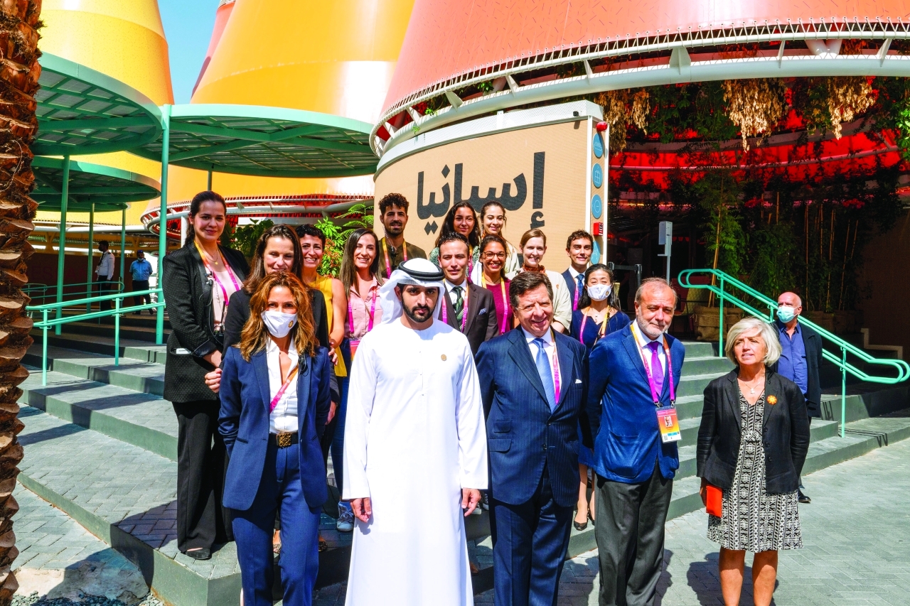 وخلال زيارته جناح مملكة إسبانيا الصديقة، اطلع سمو الشيخ حمدان بن محمد بن راشد آل مكتوم على ما يضمه الجناح المُقام في منطقة «الاستدامة»، من معروضات تركز على مساعي إسبانيا كي تكون نموذجاً للإبداع الذكي القادر على توحيد الشعوب حول مشروعات مستدامة في مجالات العلوم، والتقنية، والإنتاج، والتعليم، والفنون، فيما جاء تصميم الجناح معبراً عن قناعة إسبانيا بأهمية الاستدامة إذ استخدمت في تشييده مواد بسيطة يمكن إعادة تدويرها من النسيج والخشب والحديد.