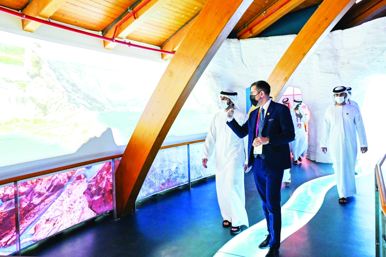 وتضمنت جولة سمو الشيخ حمدان بن محمد بن راشد آل مكتوم في مقر إكسبو، زيارة جناح جمهورية المجر الصديقة، المُقام في منطقة «اليوبيل» وتحت شعار «جذور المياه المجرية» والذي يقدم فكرة وافية حول طبيعتها الخاصة التي ترتبط بعلاقتها بالمياه على الرغم من كونها دولة داخلية لا شواطئ لها، إلا أنها تشتهر بأنها أكثر دول القارة الأوروبية التي تنتشر فيها ينابيع المياه الحارة التي يصل عددها إلى أكثر من 1300 ينبوع موزعة في أنحاء المجر، إذ تتم الاستفادة من العديد من تلك الينابيع في تقديم خدمات علاجية وكذلك توظيفها لأغراض السياحة والاستجمام والعلاج، فيما توضح التقنيات التفاعلية في الجناح المصادر الطبيعية لتلك الينابيع.