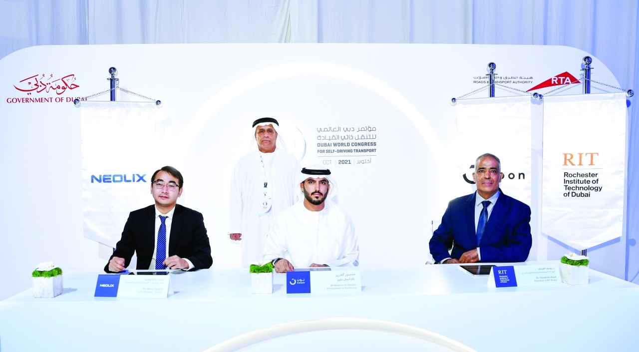 ووقعت شركة «نون»، وشركة «نيوليكس»، ومعهد روشيستر للتكنولوجيا دبي «ار أي تي»، اتفاقية تعاون، لتشغيل مركبات ذاتية القيادة من إنتاج شركة نيوليكس، لتوفير خدمات لوجستية ذاتية القيادة، وتوصيل منتجات شركة «نون» للمتعاملين، في الحرم الجامعي لمعهد روشيستر للتكنولوجيا بدبي.
