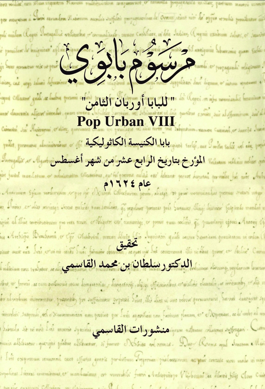 وأما كتاب : «مرسوم بابوي.. للبابا أوربان الثامن.. بابا الكنيسة الكاثوليكية، والمؤرخ بتاريخ الرابع من شهر أغسطس عام 1624» والصادر في طبعتين باللغتين العربية والإنجليزية، تحقيق صاحب السمو حاكم الشارقة، فيقع الكتاب في (74) صفحة في (النسخة العربية)، و(56) صفحة لـ (النسخة الإنجليزية).