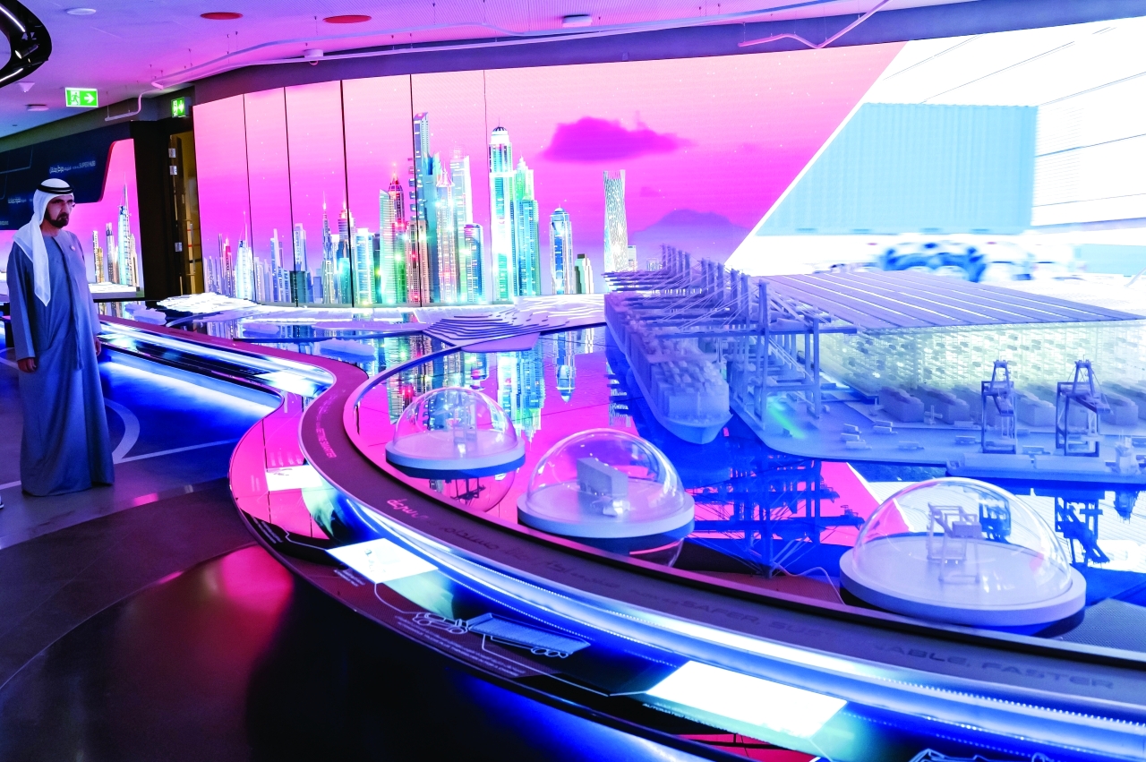 وتابع صاحب السمو مكونات جناح «دي بي ورلد» المكون من خمسة طوابق متضمناً أربع مناطق للعرض، إذ تركز منطقة «الاتصال» على قدرات المجموعة على الربط التجاري واللوجستي عالمياً بالاعتماد على التقنيات الرقمية، ومنطقة «التنقل» التي تتيح للزوار المشاركة في عملية تتبع حركة البضائع بأسلوب ذكي، ثم منطقة «الفرص» التي تبرز تمكين الأفراد، ومنطقة «الاستدامة» التي تعرض جهود المجموعة في خفض الانبعاثات الكربونية ومكافحة تلوث البيئة.