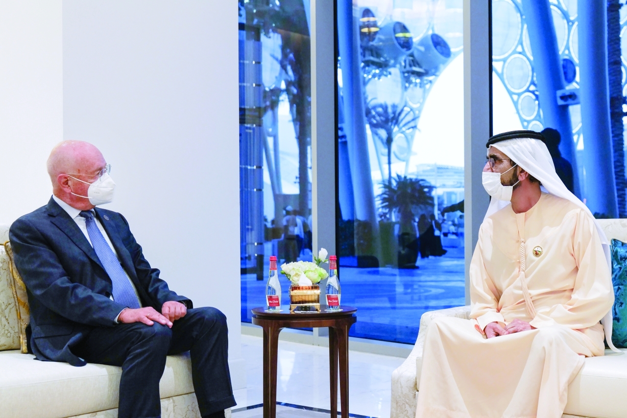 كما قال سموه خلال استقباله مؤسس ورئيس المنتدى الاقتصادي العالمي، «من إكسبو 2020 دبي نحتفي بـ50 عاماً على تأسيس المنتدى الاقتصادي العالمي وإنجازاته وبـ50 عاماً من تأسيس دولة الإمارات، نتشارك رؤية واحدة هدفها تحفيز العقول وتحويل الأفكار إلى خطط عمل ومبادرات ترسم رحلتنا للمستقبل».