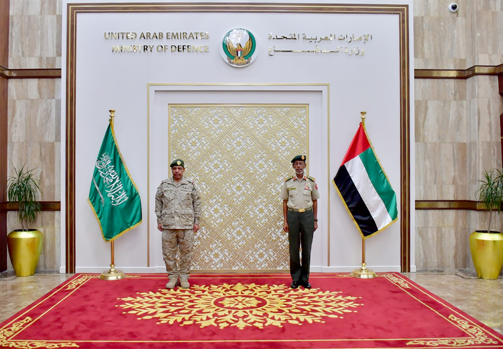 ورحب رئيس أركان القوات المسلحة بالضيف واستعرض معه علاقات التعاون الأخوية القائمة بين دولة الإمارات والمملكة العربية السعودية وسبل تعزيزها، وما تشهده من تطور على مختلف الصُعد خاصة ما يتعلق منها بالتنسيق العسكري والتعاون الدفاعي بين البلدين الشقيقين.
