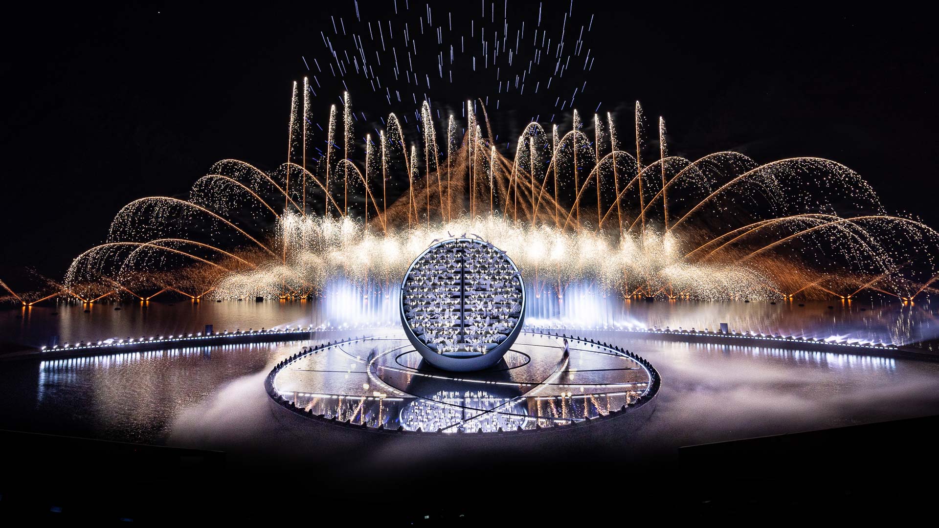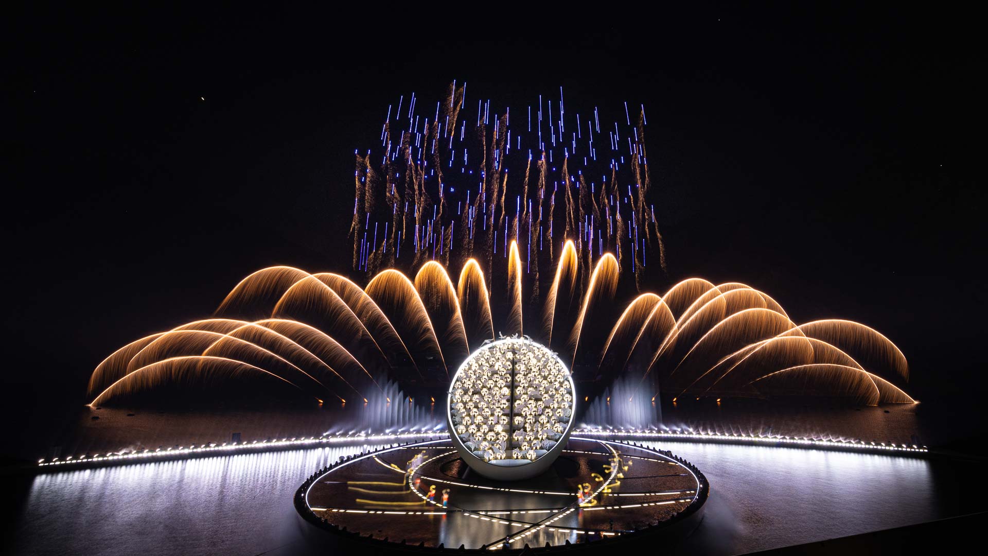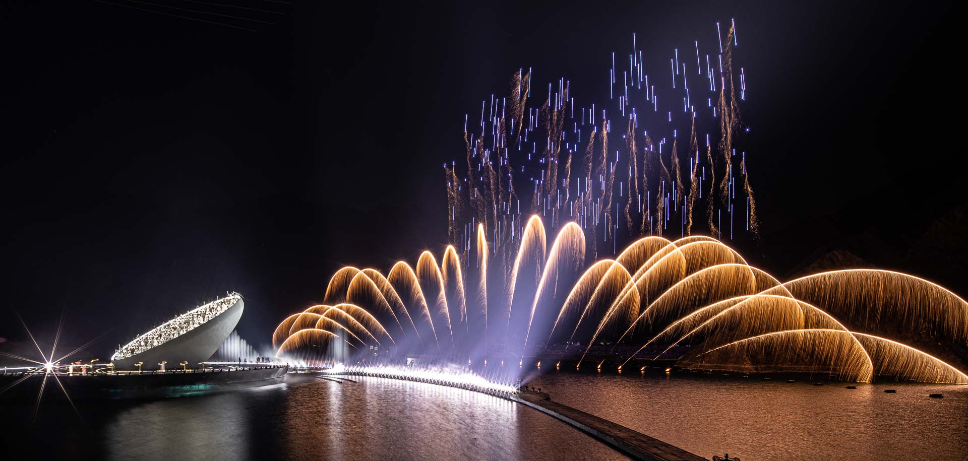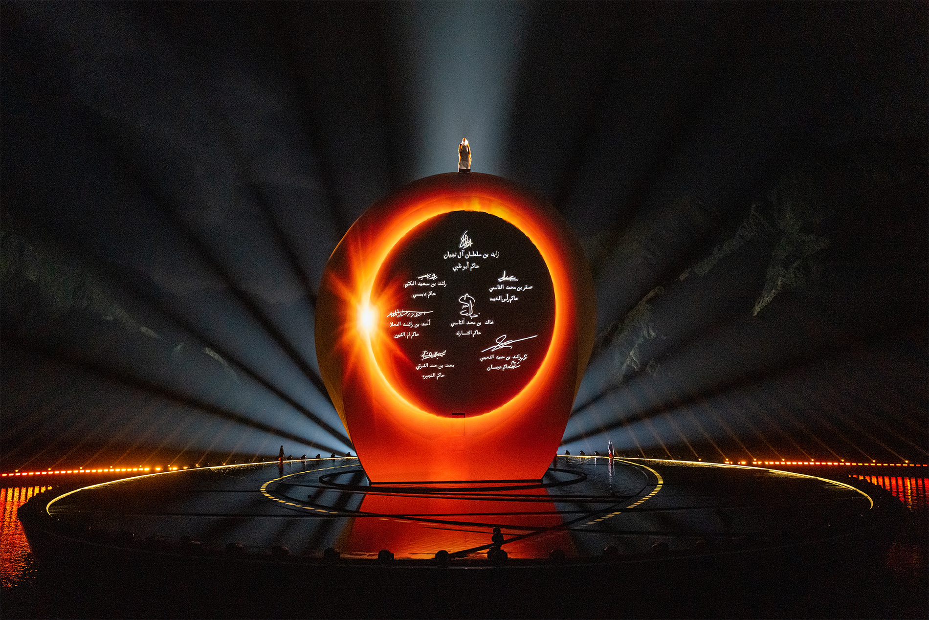 لأول مرة في دولة الإمارات العربية المتحدة، أطلقت 400 طائرة "درون" من طراز Pyro لرفع الألعاب النارية خلال العرض، تضّمن العرض أيضاً 97 مبنى من المباني الأيقونية في الإمارات، و101 حيوانًا، و98 نباتاً، و200 طائرة "الدرون" Nano LED، و138 ممثلاً ومؤدياً داخل المنحوتة، و18 وسم التي مثلت القبائل والعائلات المختلفة في الإمارات.