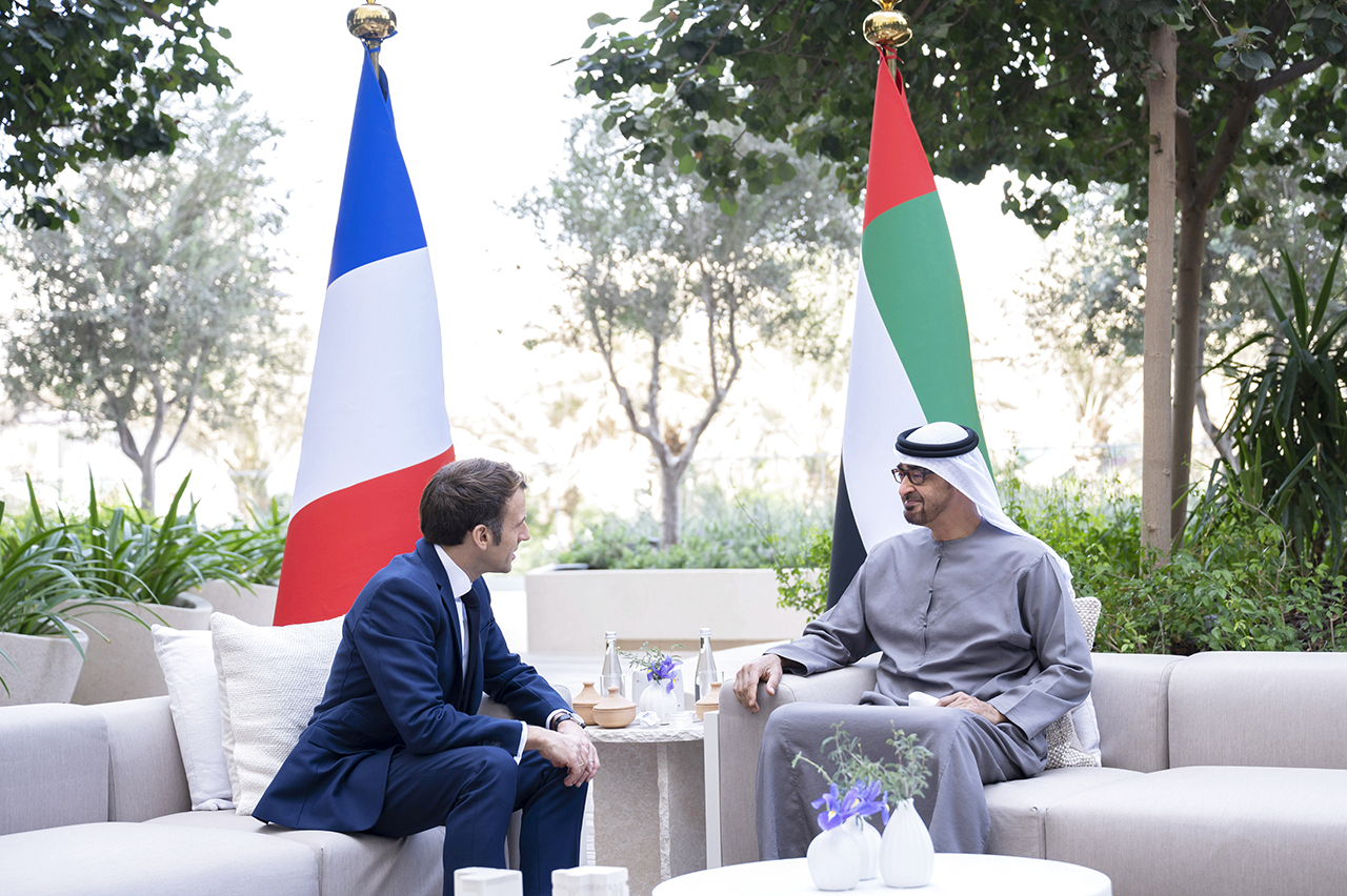 وأشار البيان إلى أن صاحب السمو الشيخ محمد بن زايد آل نهيان ولي عهد أبوظبي نائب القائد الأعلى للقوات المسلحة، أعرب عن التطلع إلى العمل بجانب فرنسا ومع المجتمع الدولي للدفع بالجهود العالمية لمواجهة تداعيات التغير المناخي وحماية البيئة، إضافة إلى خلق مستقبل اقتصادي أكثر استدامة.