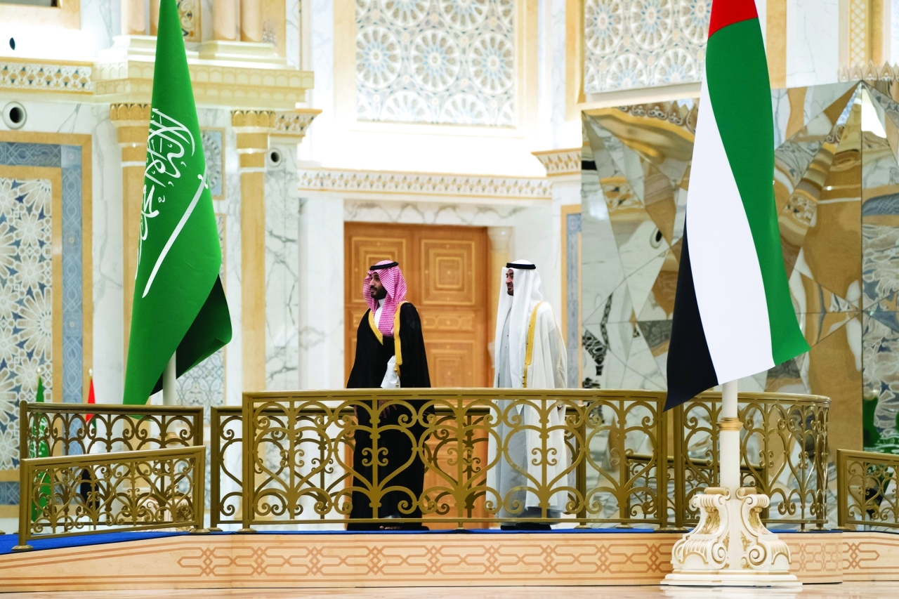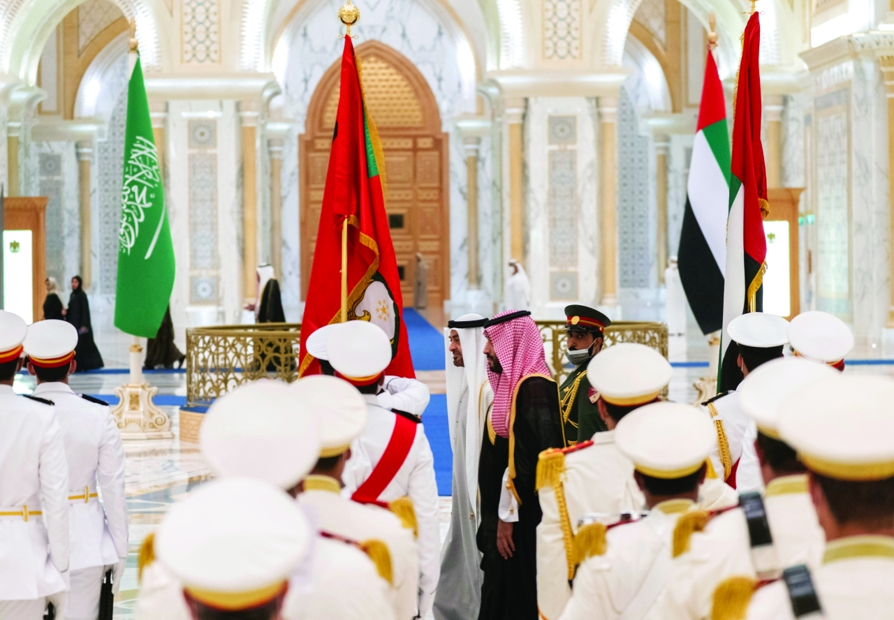 وقدم صاحب السمو الشيخ محمد بن زايد آل نهيان ولي عهد أبوظبي نائب القائد الأعلى للقوات المسلحة، الوسام لمحمد بن سلمان بن عبد العزيز آل سعود، خلال المراسم التي جرت في قصر الوطن في أبوظبي أمس.