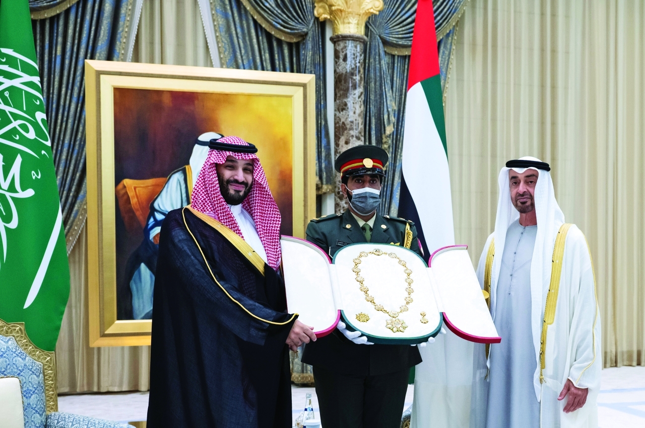 منح صاحب السمو الشيخ خليفة بن زايد آل نهيان رئيس الدولة، حفظه الله، الأمير محمد بن سلمان بن عبد العزيز آل سعود ولي العهد نائب رئيس مجلس الوزراء وزير الدفاع في المملكة العربية السعودية الشقيقة، «وسام زايد»، الذي يمنح لأصحاب السمو والملوك والرؤساء وقادة الدول الذين يسهمون بدور بارز واستثنائي في ترسيخ العلاقات بين بلدانهم ودولة الإمارات، وذلك تقديراً لدور الأمير محمد بن سلمان المحوري في تعزيز العلاقات والتعاون الأخوي المشترك بين دولة الإمارات والمملكة العربية السعودية الشقيقة، وتعبيراً عن الاعتزاز بعمق هذه العلاقات الراسخة وما يجمع البلدين من روابط تاريخية متجذرة.