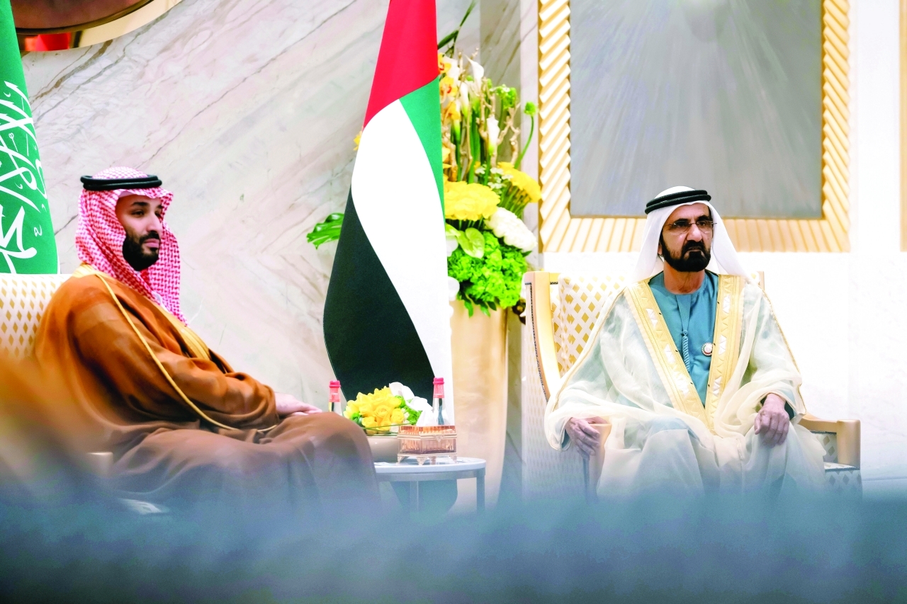 وقد رحب صاحب السمو نائب رئيس الدولة رئيس مجلس الوزراء حاكم دبي، بولي العهد السعودي الذي يزور الدولة حالياً، مؤكداً سموه عمق العلاقات الأخوية التي تربط دولة الإمارات بشقيقتها المملكة العربية السعودية، ومدى الترابط بين الشعبين الشقيقين، وخصوصية تلك العلاقة الأخوية الممتدة بين البلدين في إطار من تكامل الرؤى ووحدة المصير والتاريخ المشترك.